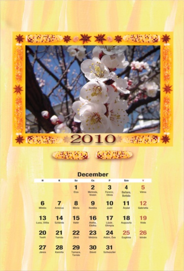 Jelenleg 40 különböző minta alapján rendelhet 2010. évi naptárat:
